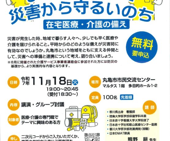| 令和7年度 多職種連携研修会 テーマ「新しい認知症観」 PM 2:00 令和7年度 多職種連携研修会 テーマ「新しい認知症観」 @ レクザムホール 小ホール棟5階 多目的会議室「玉藻」 2026年02月11日(水) PM 2:00 ~ PM 5:00 令和7年度 多職種連携研修会 テーマ「新しい認知症観」 上記研修会につきまして下記内容の通り開催予定です。 ご興味ご関心のあられます方は下記リンク先よりお申込みください。 日時︓令和8年2月11日(水・祝)14︓00〜17︓00(会場受付13︓30) 会場︓レクザムホール小ホール棟5階多目的大会議室「玉藻」(香川県高松市玉藻町9-10 TEL: 087-823-3131) 主催:高松市在宅医療介護連携推進会議 内容 ■VR動画体験・視聴 「FACEDUO認知症ケア支援VRについて」 業者 大塚製薬株式会社様 ■基調講演・グループワーク 「認知症基本法を活かして、医療介護連携のパワーアップを!~現場の諸課題を共に超えていくカギと実践~」 講師 永田 久美子 氏(社会福祉法人浴風会認知症介護研究・研修東京センター副センター長(兼)研究部長) お申し込みはこちらから↓ 令和7年度 多職種連携研修会 チラシはこちら↓ 高松市多職種連携研修会【ご案内】 | ||||||
