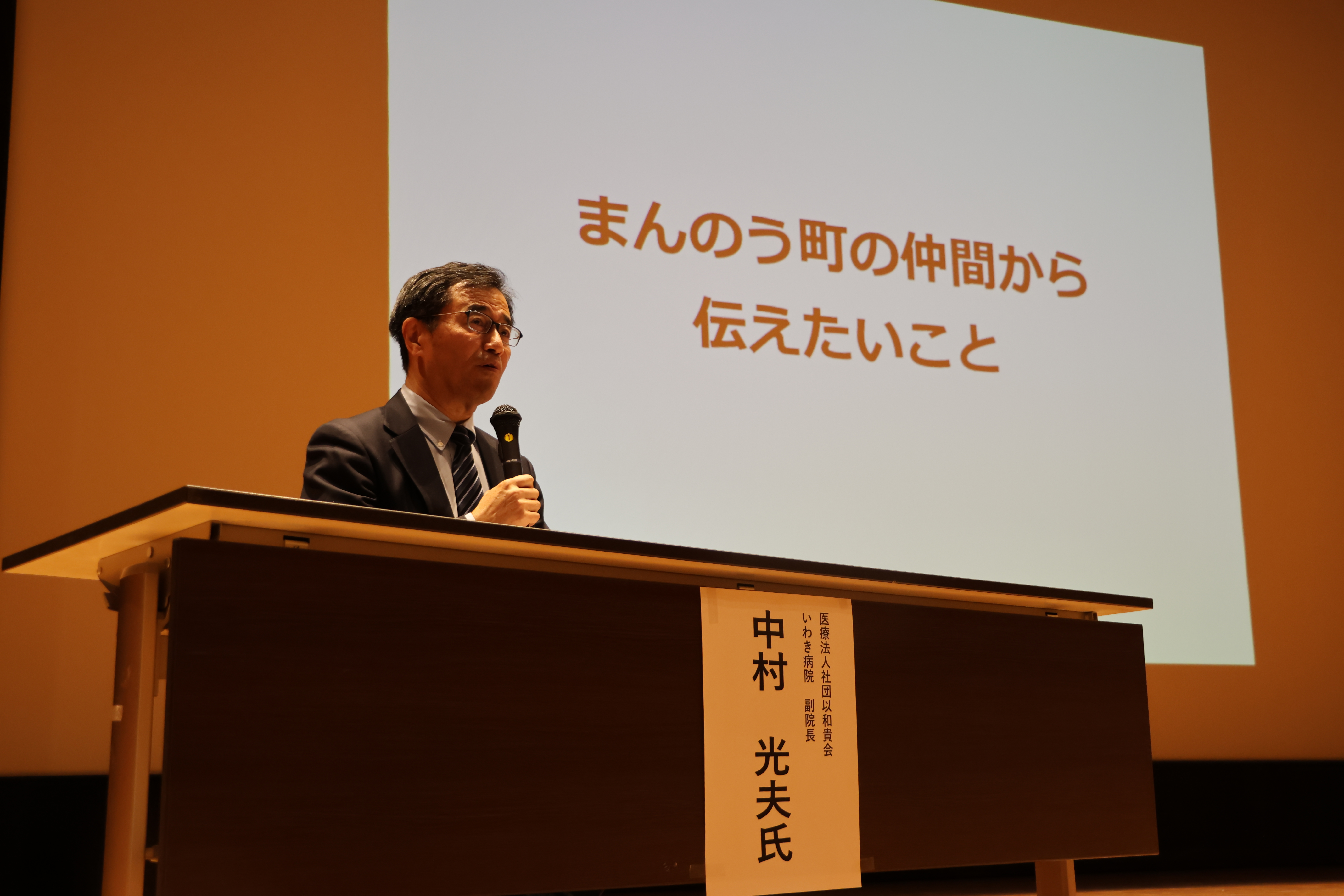 その後、休憩をはさみ「まんのう町の仲間から伝えたいこと」とし、医療者編・ボランティア編の2編にて